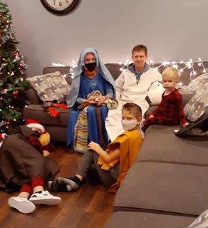 Doing the nativity play with cranky Benjamin who refused to participate properly and misspoke all his parts on purpose,  not enough guests to fill the roles,  Peter who refused to play the baby Jesus but couldn't really properly do anything else, and me in a mask kind of made the whole thing a bust.  We've had some really fun nativity plays over the years, but this wasn't one of them.  We made it through for the sake of tradition, though and tried to make the best of it.